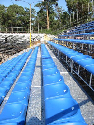 Las tribunas pueden ser montadas en terrenos irregulares y el sistema es apto para público sentado o de pie.